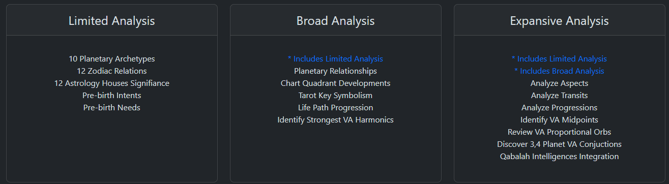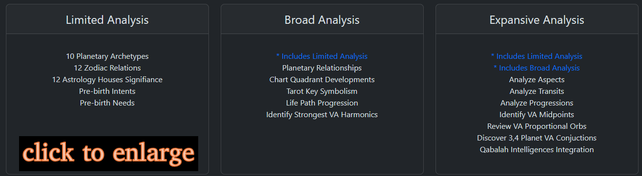 The Astrology Analysis includes the following: