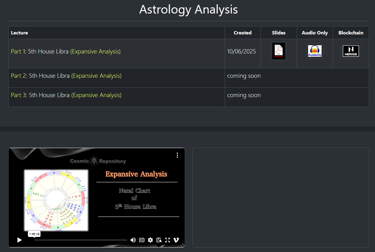 A broad analysis was already completed on September 16 2025 with 5th House Libra, but now we will begin an expansive analysis in a three part lecture.